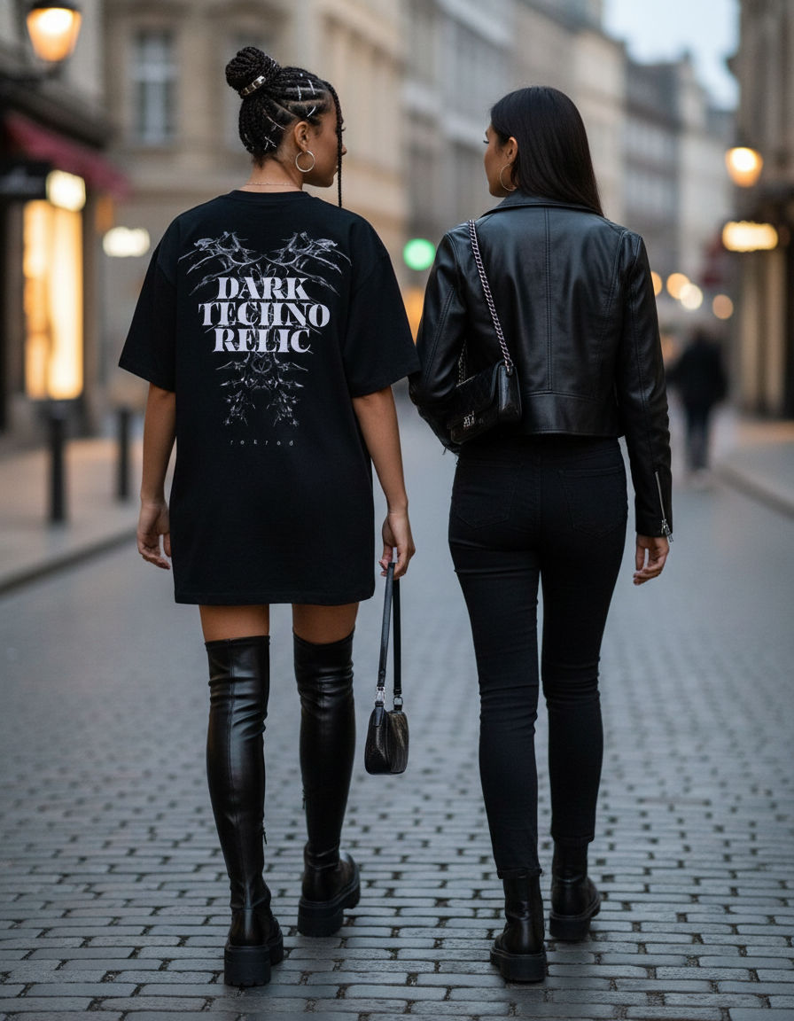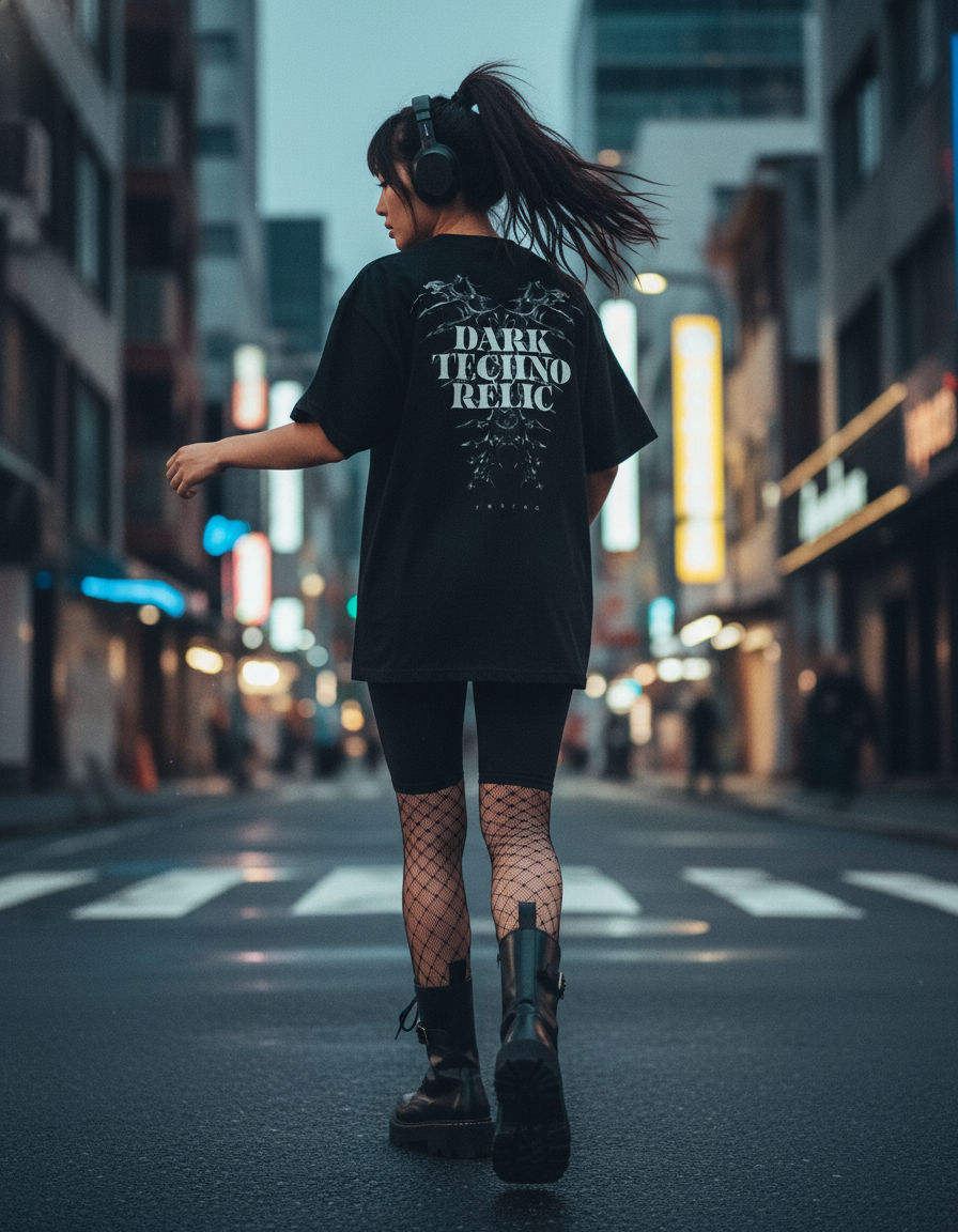 The DARK TECHNO RELIC Oversized Tee is a weapon for the nocturnal. Forged from durable, heavy-duty materials, this unisex oversized t-shirt screams underground attitude and techno devotion. Its loose fit lets you dominate the dancefloor while the dark aesthetic syncs with the raw pulse of industrial beats. Perfect for techno warriors, warehouse ravers, and underground seekers looking for rave-ready oversized streetwear with a sinister edge. This is not clothing — it’s initiation into the shadow circuit.